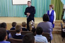 Начальник ОГИБДД Балтасинского района Шаймухамметов Р.Р. объяснил правила дорожного движения и безопасность на дорогах/Балтач ЮХИДИ идарәсе башлыгы Шаймухамметов Р.Р. укучыларга юл иминлеге кагыйдәләрен аңлатты