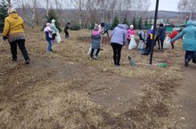 Обучающиеся начальных классов на уборке территория лицея/Башлангыч сыйныф укучылары лицей янын җыештыру өмәсендә