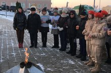 Җиңү волонтерлары, «Патриот» юнармия отряды әгъзалары Билгесез солдат көненә багышланган митингта катнаштылар.