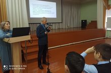 Советник директора по воспитанию Л.М.Шакирова организовала встречу с врачом-наркологом Р.К. Шафигуллиным для обучающихся 8-х классов.