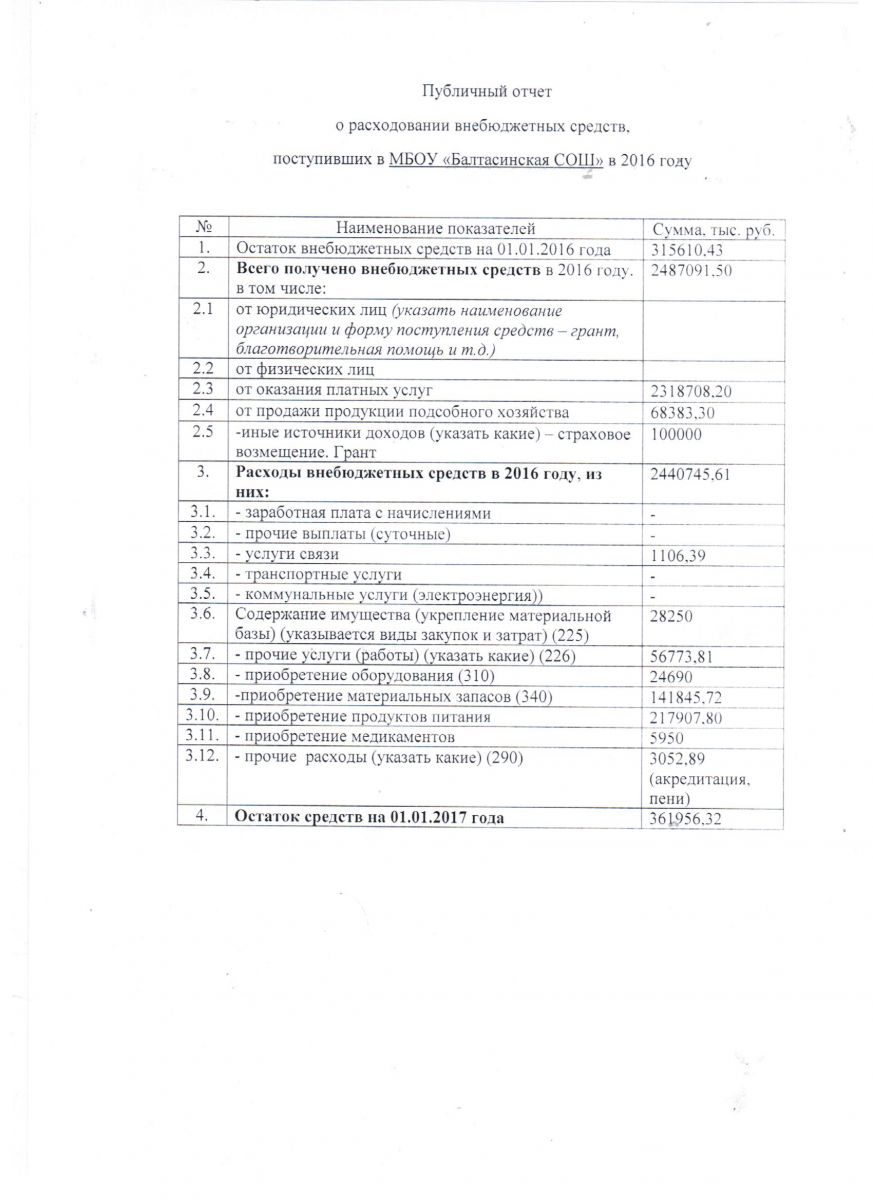 Публичный отчет о расходовании внебюджетных средств 2016 год