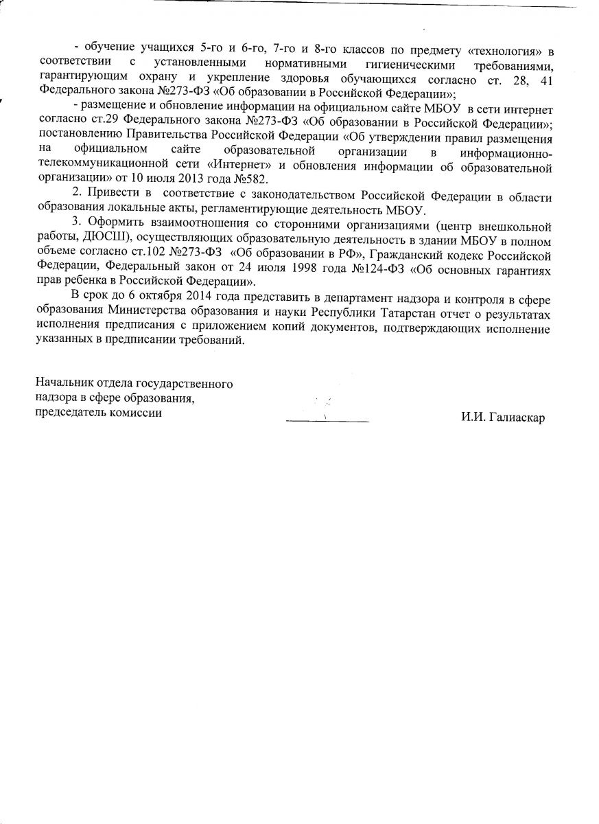 Предписание органов, осуществляющих контроль (надзор) в сфере образования/дәүләт тикшерүен үтәүче органнарның күрсәтмәләре