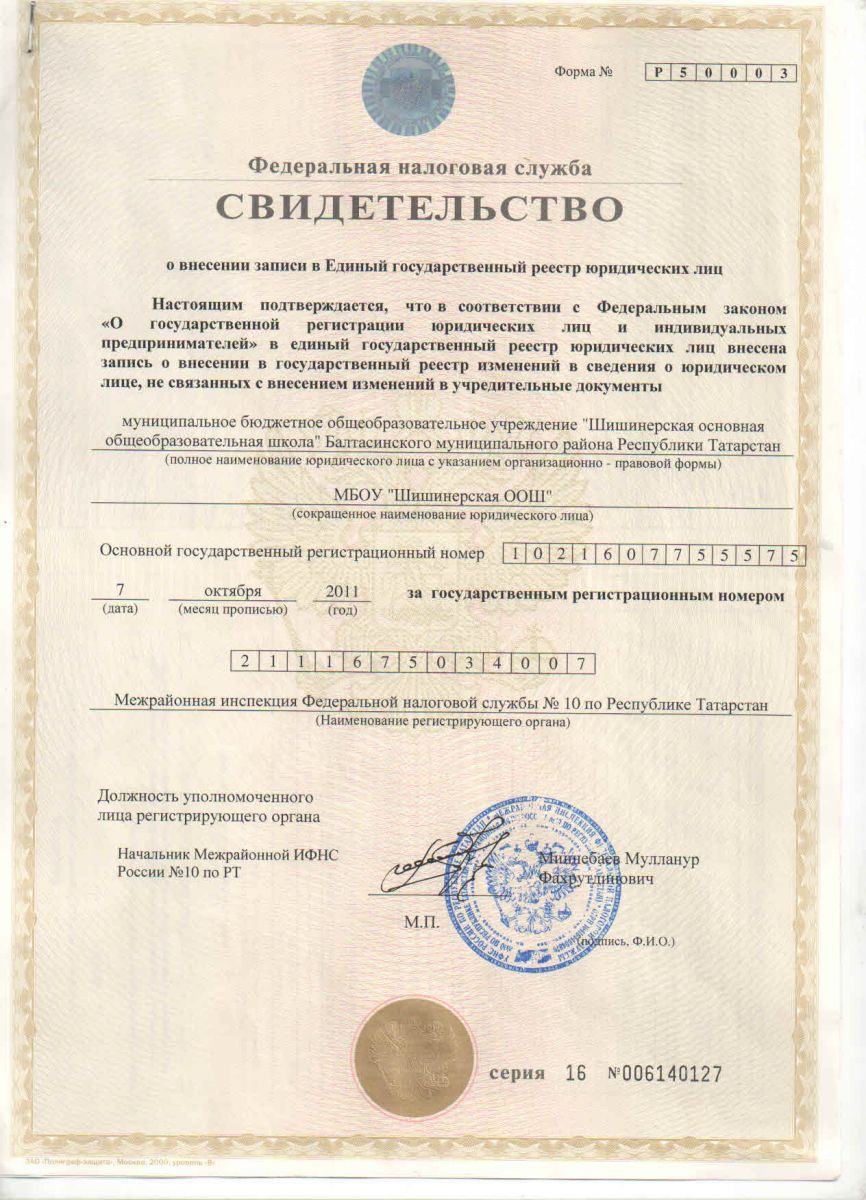 муниципальное бюджетное общеобразовательное учреждение «Шишинерская основная общеобразовательная школа» Балтасинского муниципального района Республики Татарстан