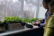 "Эковесна" акциясе кысаларында укучылар помидор усентеләрен карыйлар.