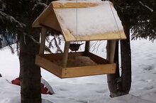 Кошлар көне уңаеннан җимлеккә килгән кошларны күзәттек. / Понаблюдали за птицами, покармили их.