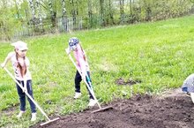 Яшелчә бакчасында язгы өмә. Балалар да бик теләп ярдәм иттеләр./ В огороде субботник. Дети с удовольствием помогали взрослым.