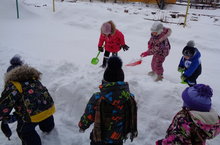 Кар күп яуган.Без дә апаларга кар көрәргә булыштык./ Снега много. Мы тоже помогли.