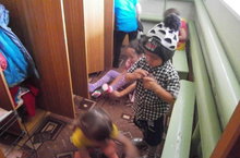 Апа көндәлек саф һавага чыкканда дөрес эзлеклелектә киенергә өйрәтә, әмма әлегә бик дөрес үк килеп чыкмый.