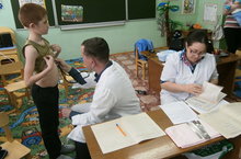 Бүген мәктәп - бакчада чираттагы медосмотр узды. Участок педиатры Смагин К. С. балаларның сәламәтлеген тикшерде, рекомендацияләр бирде.