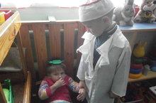 Бакчада бик күңелле, төрле - төрле уеннар уйныйбыз. "Табиб" Әмир "авыру" Зәмирәне дәвалый.