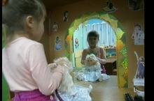 Бакча балалары чәчтараш почмагында матурланырга, көязләнергә өйрәнәләр. Алинә яраткан курчагына причёска ясый.