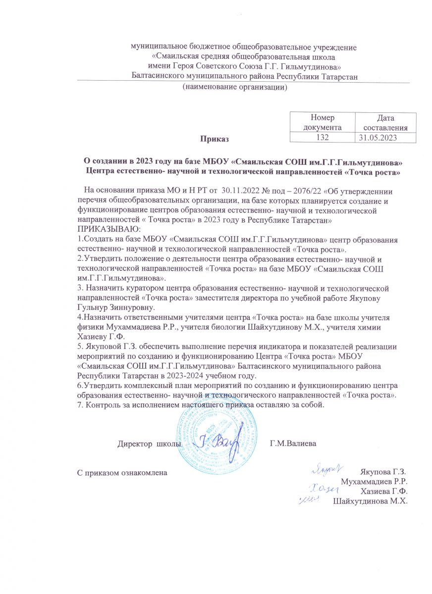 Приказ о создании центра " Точка Роста "