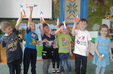 Ко "Дню космонавтики" смастерили поделку ракету-звездолет.