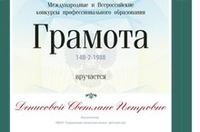 поздравляем воспитательницу детского сада Денисову Светлану Петровну с победой на международном конкурсе "нравственно-патриотическое воспитание личности"