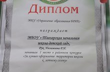Диплом 1 степени "За лучшее оформление территории в летнем сезоне/ Рәхмәт мәктәп-бакча хезмәткәрләренә! Сезнең куллар белән утыртылган, үстерелгән чәчәкләр, быел да бик матур, бик зәвыклы килеп чыкты.