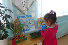 В группе ранненго возраста дети наблюдают за ростом лука, поливают его.
