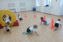 Ходьба на четвереньках между предметами и преодолевая препятствия.