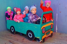 Дети средней группы любят играть в сюжетно-ролевые игры. А особенно любят сидеть за рулем автомобиля. Сегодня Халиль катает своих девочек.