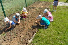 Мы помогаем нашим воспитателям полоть лук.