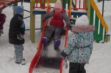 На прогулке дети средней группы очень любят кататься с горки