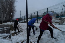 Раскидывание снега на территории детского сада 11.04.2016