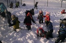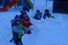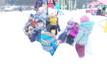 Дети старшей группы построили большой и красивый домик из снежных комков, теперь с удовольствием там играют.