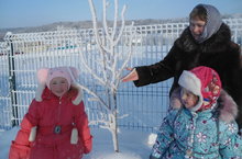 Воспитатель старшей группы ознакомила детей на прогулке с природным явлением - инеем.