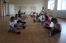 Во время татарского занятия с детьми подготовительной группы познакомились и сыграли в татарские народные игры "Яшелчәләр", "Алдыр чишмә тамчылый", "Кап та коп", "Мияу- мияу, нинди төс?"
