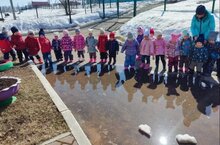 Наблюдаем за таянием снега и большой лужей