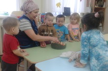 Дети раннего возраста вместе с младшим воспитателем посадили лук