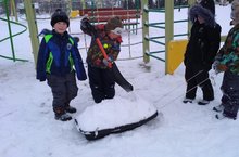 Помогаем убирать снег на участке.
