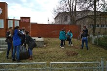 Отряд "Волонтеры Победы" провели уборку вокруг территории памятника, посвященный погибшим героям войны.