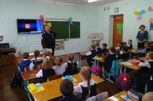 В рамках месячника безопасности в нашей школе побывал в гостях УУП майор Файзрахманов. Рассказал первоклассникам о правилах дорожного движения, ответил на вопросы детей и вручил всем светоотражающие наклейки.