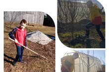 Учащиеся 4-а класса (кл.рук-ль: Зарипова А.Б.) приняли участие в акции "Эковесна": очистили свой двор, посадили дерево, вскопали грядку.