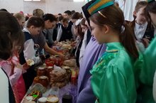 В рамках проведения международного Дня родных языков в школе прошла ярмарка. Учащиеся в нарядных народных костюмах продавали сладости, выпечку, домашние заготовки, вязаные изделия. Праздник сопровождался танцами, звучала народная музыка.