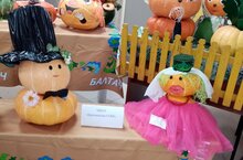 Сегодня в районном Доме культуры прошла выставка поделок из тыквы, приуроченная к Дню пожилого человека. Учащиеся 7-б класса нашей школы приняли в ней участие. Композицию из тыквы они создали под руководством педагога дополнительного образования Платоновой А.М.
