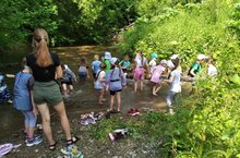 Сегодня провели конкурс "Шляпное сражение" и пошли к речке собирать речные камешки. Самые красивые и оригинальные находки были оценены.