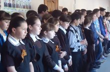 Мәктәптә “Георгий тасмасы” акциясе игълан ителде. Сыйныф җитәкчеләре укучыларга әлеге акция, Георгий тасмасының тарихы, әһәмияте турында аңлаттылар.