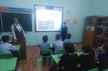 Районный семинар учителей информатики. Учитель физики и информатики Ибрагимов А.В показал открытый урок в 9 классе по теме: "Заполнение массива случайными числами"