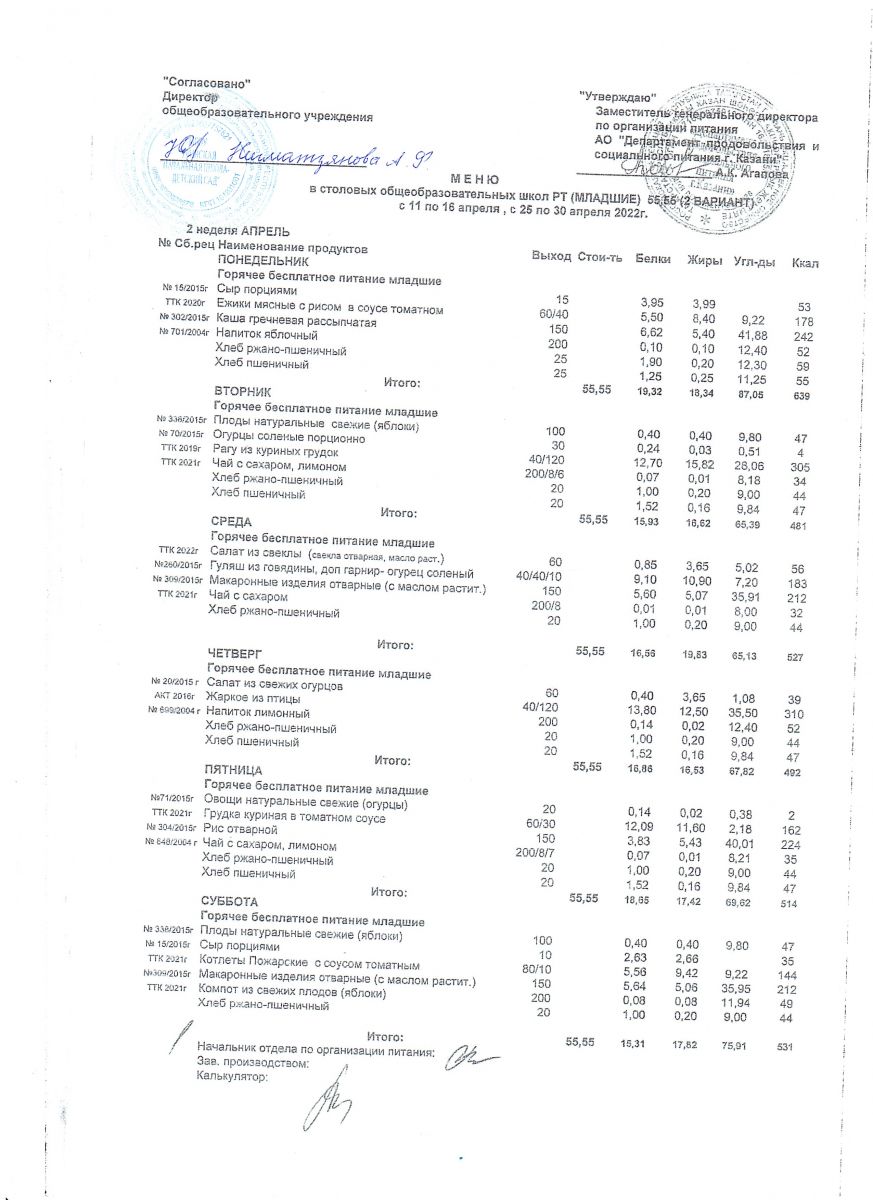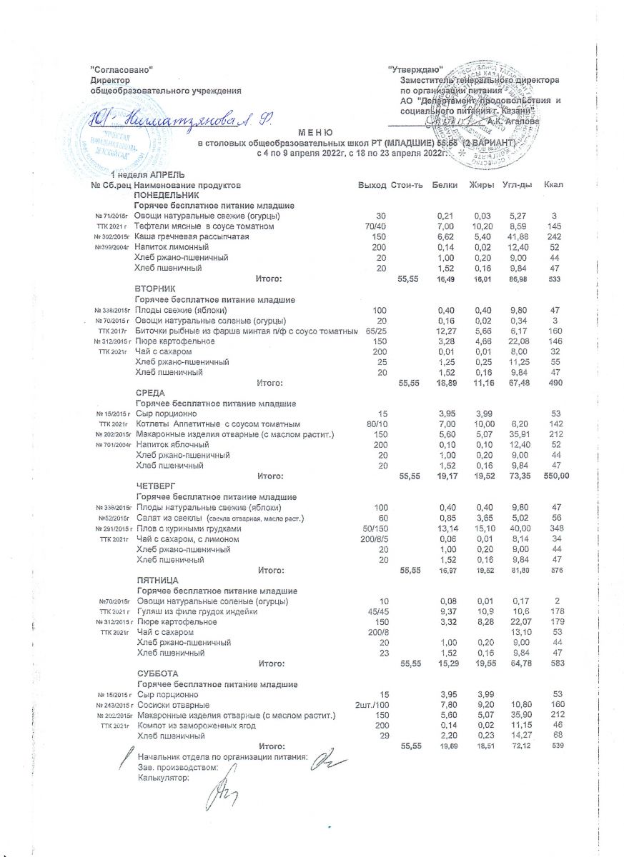 Бесплатное МЕНЮ ДЛЯ МЛАДШИХ ШКОЛЬНИКОВ
