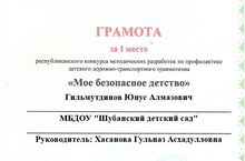Бакчабызга йөруче балаларыбыз: Гильмутдинов Юныс, Габдулхакова Ләйлә һәм Шигапова Ләлә "Мое безопасное детство" республика конкурсында катнашып призлы урынга лаек булдылар! Аларны жинулэре белэн котлыйбыз! Килэчэктэ ижади унышларларга ирешуләрен телибез! 12.12.2023