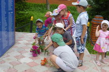 Сугышта һәлак булганнар истәлегенә чәчәкләр салдык.