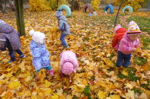 Көзге яфраклар җыештырып апаларга ярдәм итәбез, матурлыкларына хәйран калабыз.