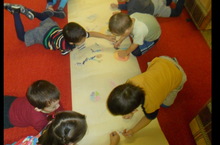 Иҗади эшчәнлек вакытында балалар сюжетлы рәсемне бергәләп иҗат итәләр.