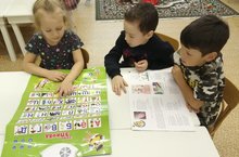 Балалар "Шаян әлифба" плакаты белән татар алфавиты хәрефләрен,татар телендә кечкенә шигырьләр ,җырлар өйрәнәләр.