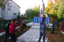 Көзге шәфкатьлелеге кысаларында, 8 нче сыйныф укучылары Бөек Ватан сугышында Һәлак булган якташларыбыз хөрмәтенә куелган һәйкәл янын тәртипкә китерүдә катнаштылар.