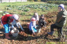 Югары класслар бәрәңге басуында кайнасалар, бишенчеләр мәктәп яны участогында мәш киләләр.