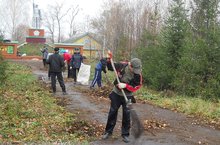 Һәйкәл тирәсен чиста тоту өчен укучылар бар көчләрен куя.