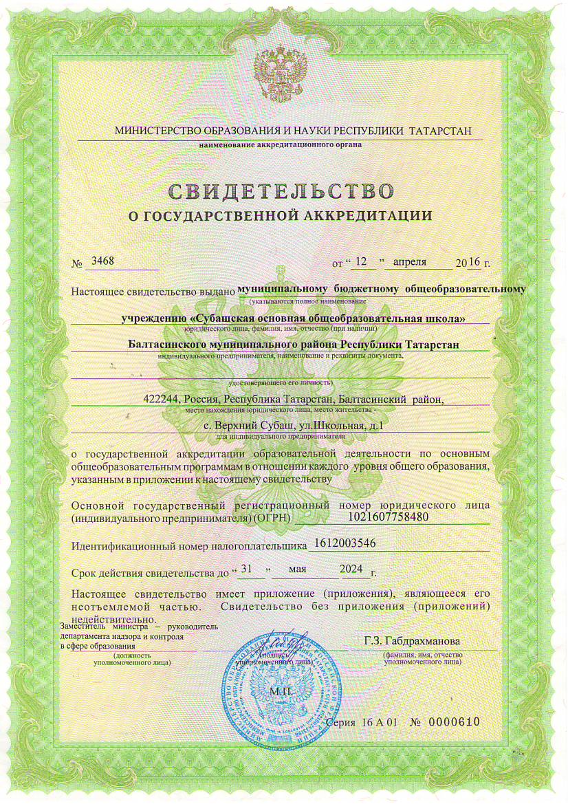 | Короткое название: | МБОУ "Субашская ООШ" Балтасинского муниципального района Республики Татарстан |