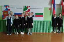 Каждую неделю, в понедельник поднимаем флаг Рф и РТ под гимн РФ и РТ.